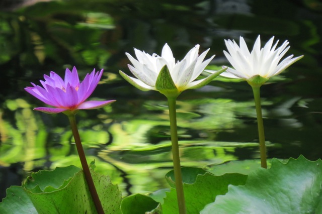 BRIGHT: Water lilies with the bright morning light behind them in Jim